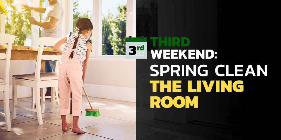 If it’s still a bit cool outside, keep it to about half an hour. If it’s warmer, you can leave the windows open for up to three hours.Third Weekend: Spring Clean the Living Room